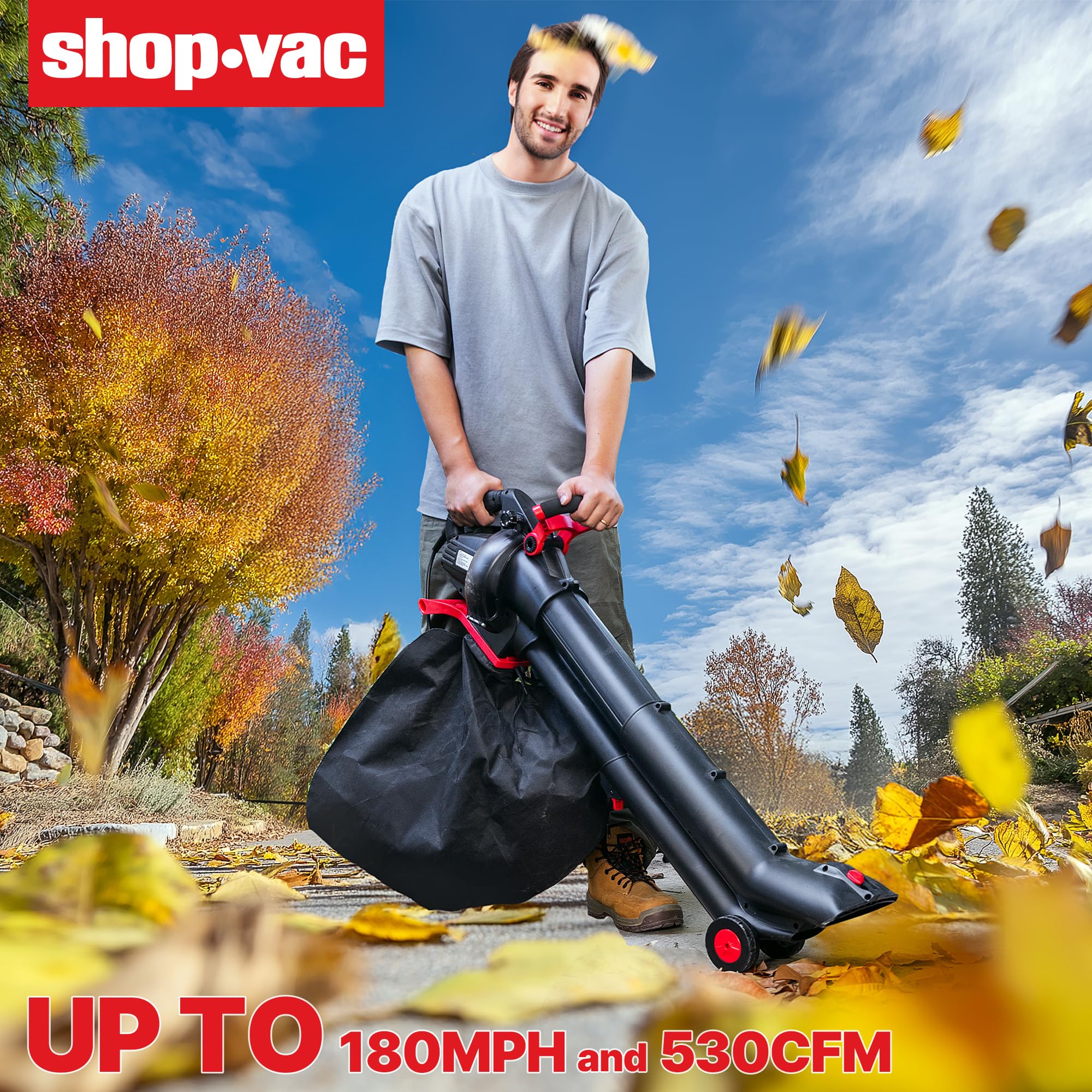 Shop-Vac 3 in 1 Electric Leaf Blower, Vacuum & Mulcher for Lawn Care, 180 mph Airflow, 530 cfm Delivery Power, 35L Collection Bag, Corded