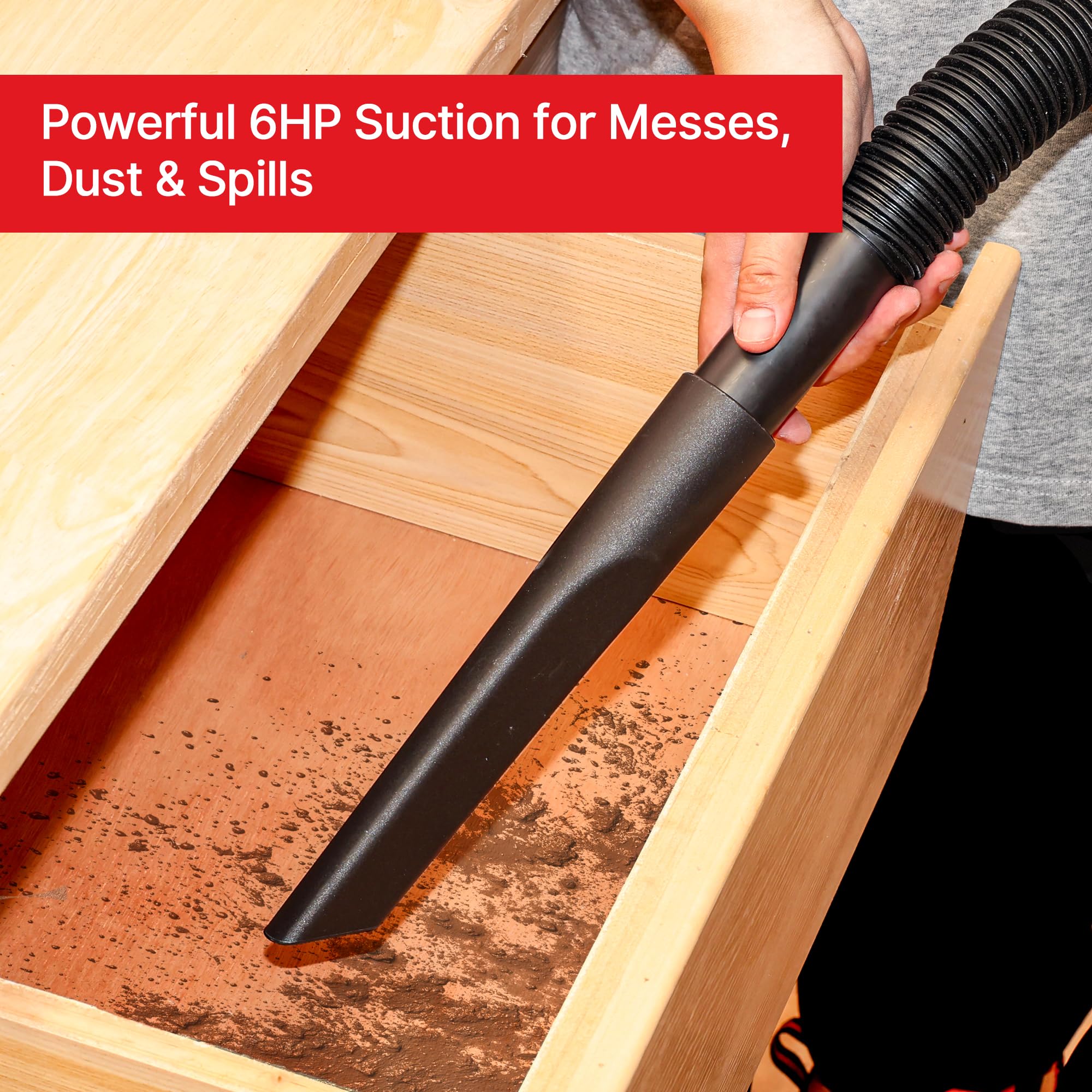 - 3-in-1 Multi-Function: Peak 6 HP for strong wet/dry suction and 100 CFM blower. Cleans dust, debris, wood chips, sewage, or blows leaves and patio mess with ease.