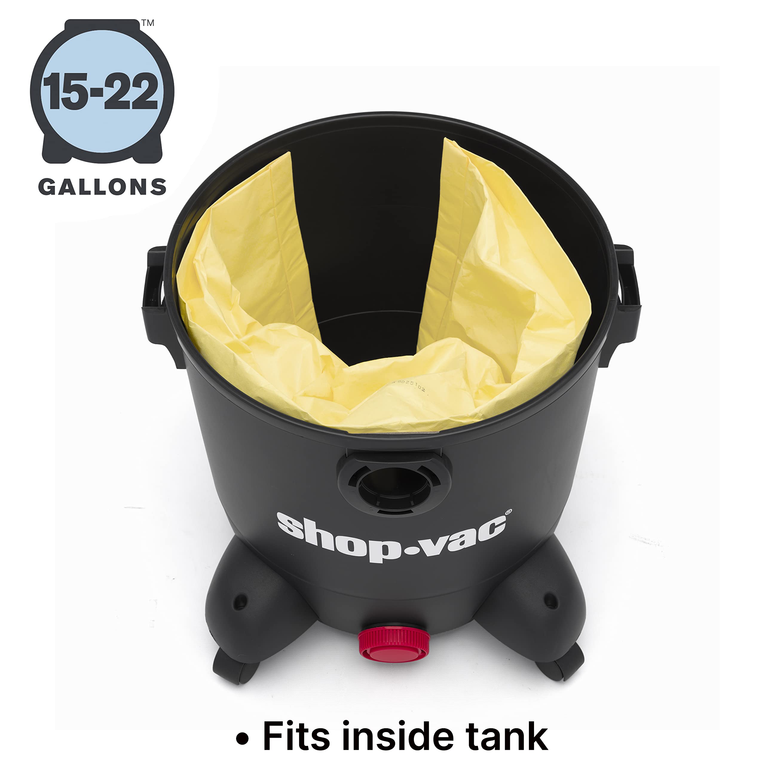 - EASY TO USE: Simply remove the bag from the tank inlet and throw it in the trash, Two bags are included in a pack, Fits standard 5-8 Gallon vacs with the inlet located on the tank, Does not work with 5 Gallon Wall Mount or HangUp Vacs, For dry pick up only,