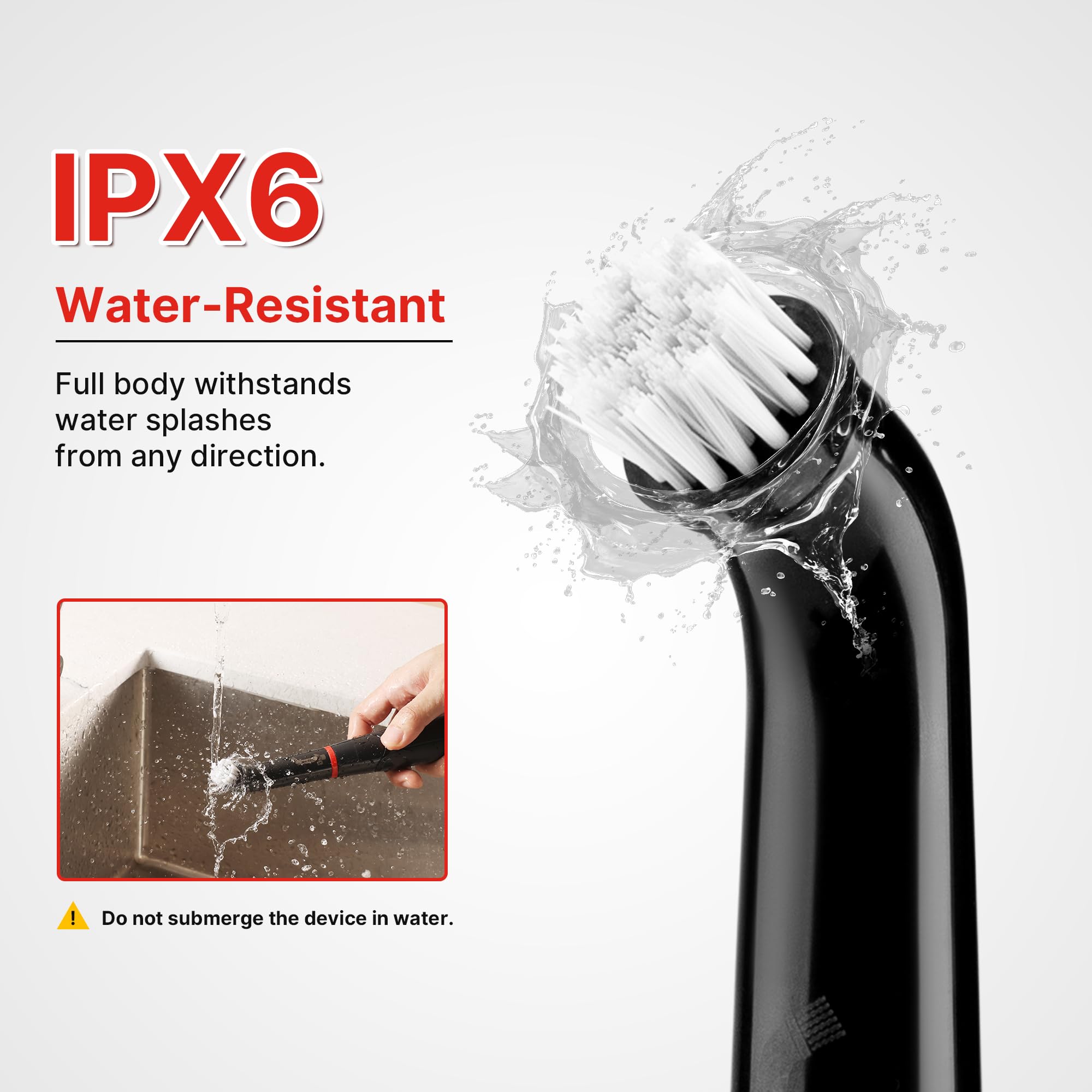 - IPX6 Water-Resistant: Rated IPX6 for use in wet environments, built to handle splashes and water spray with confidence during everyday cleaning. Please note that the scrubber should not be fully immersed in water.
